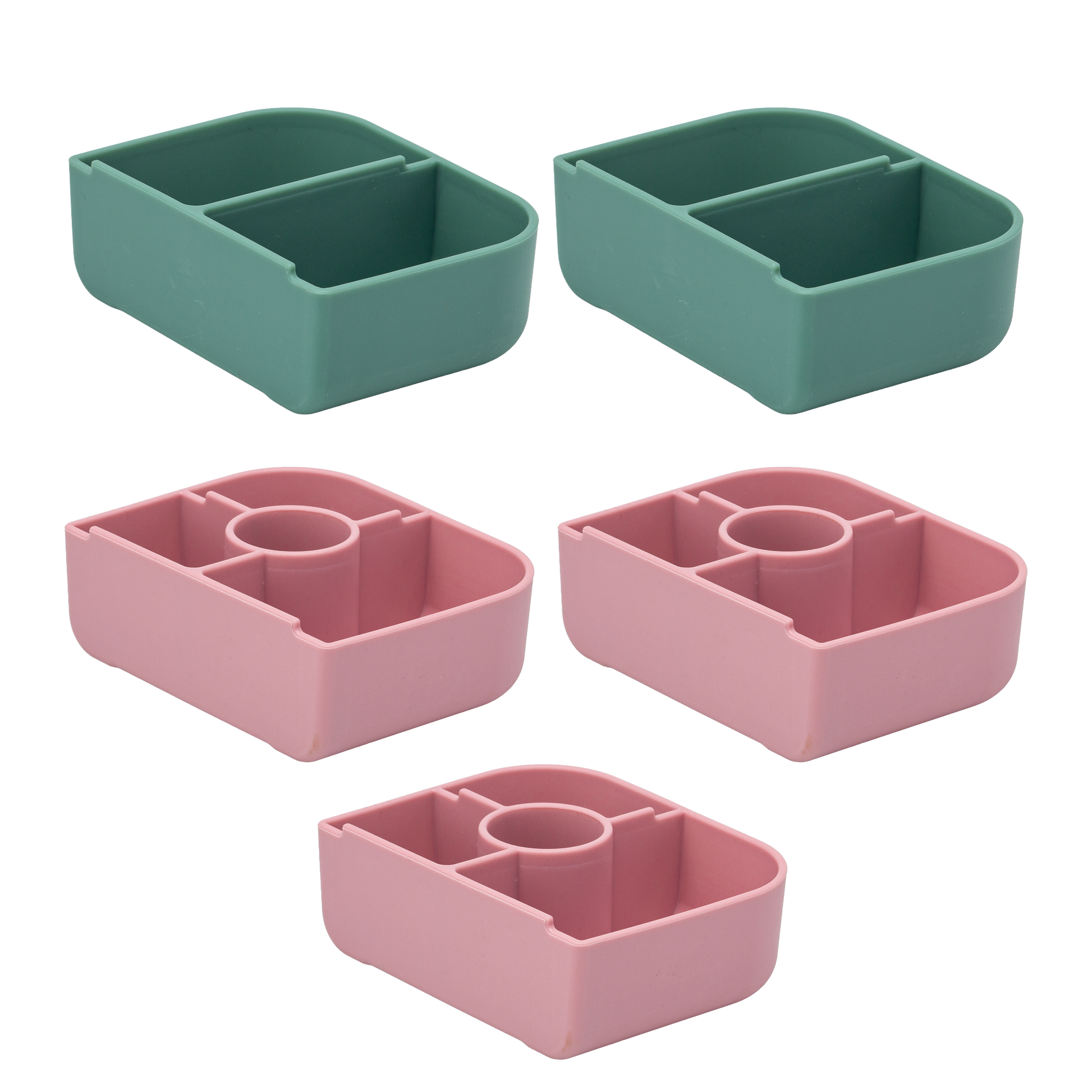 The Bento Insert Pack includes 4 interchangeable silicone inserts — 2x 2-compartment and 2x 4-compartment — designed to help you customise every lunch.
